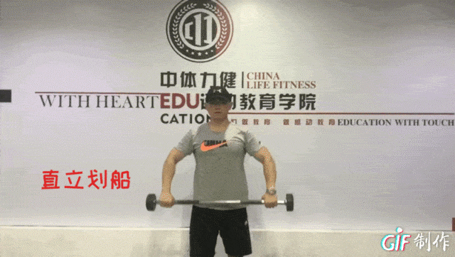 动作3:直立杠铃提拉 4-6组*8-12RM